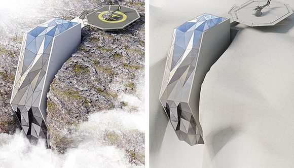 他在接受我们的采访时说:“我觉得能把自然界中的山体裂缝和建筑结合在一起非常棒,所以我决定使用简单的墙体结构,把外形打造成群山的模样——各种高度不一的三角形。”这座概念酒店内部的构造难度很大,里面分了好几层,各层之间由电梯连通,房顶还设计了一个停机坪,方便游客往来。