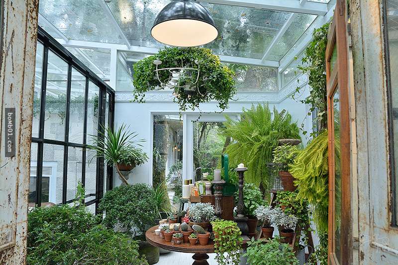 这里的纯白玻璃屋很浪漫,周围被大片树林、欧式庭园造景环绕包围,室内还有木制桌椅、古董摆设与绿植栽等元素,乡村风清淡有浪漫。