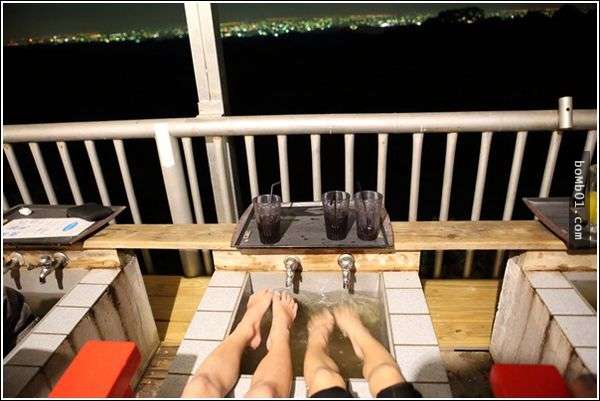 这里的食物很美味,夜景同样吸引人。客人还能享受专属座位的泡脚服务,浸泡草药后的暖呼呼水池,能够促进血液循环。