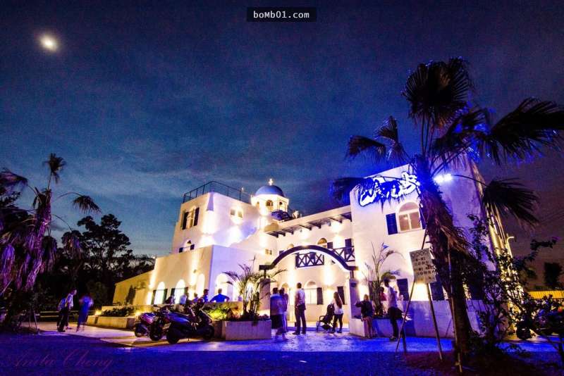 这间咖啡厅拥有货柜屋造型,以蓝白双色的地中海色系为主体配色,门口还有小巧可爱的风车装饰,前院宽敞,在这里和二楼观景台都能欣赏到夜空美景。它还有超大的Love立体字版,用餐时的气氛很浪漫。