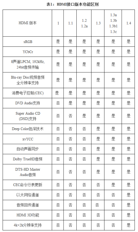 HDMI接口的全称是High Definition Multimedia Interface(高清晰度多媒体接口),是一种在消费电子领域和PC领域同时使用的全数字化接口。它可以传送无压缩的音频信号及视频信号,由于音频和视频信号采用同一条线缆传输,因此大大简化了接口线缆的数量,已经在家庭电器和PC中普及。HDMI接口从出现至今,已经有了多个版本的进化,从HDMI 1.1到HDMI 1.4,虽然接口的外观没有变化,但是功能和带宽已经出现了质的提升。目前主流的HDMI接口版本为HDMI 1.3(a、b、c),但是随着3D视频的流行,HDMI 1.4版本的设备也大量上市,成为各家的重点推广产品。HDMI 1.4带来了几项重大创新功能,包括HDMI以太网络通道、音频回传通道、HDMI 3D视频播放功能和4k×2k超高分辨率的支持。