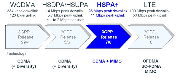 由於HSPA是建立在UMTS 3G標準之上的,因此也有人稱其中的HSDPA為第3.5代通信系統。目前,全球90個國家一共建立了211個HSDPA網絡,為使用者提供了理論下行速率峰值為3.6Mbps或者更高的7.2Mbps的高速網絡。