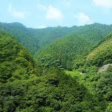 后面(座位身后)吊一幅大树画(两排茂盛大树)。