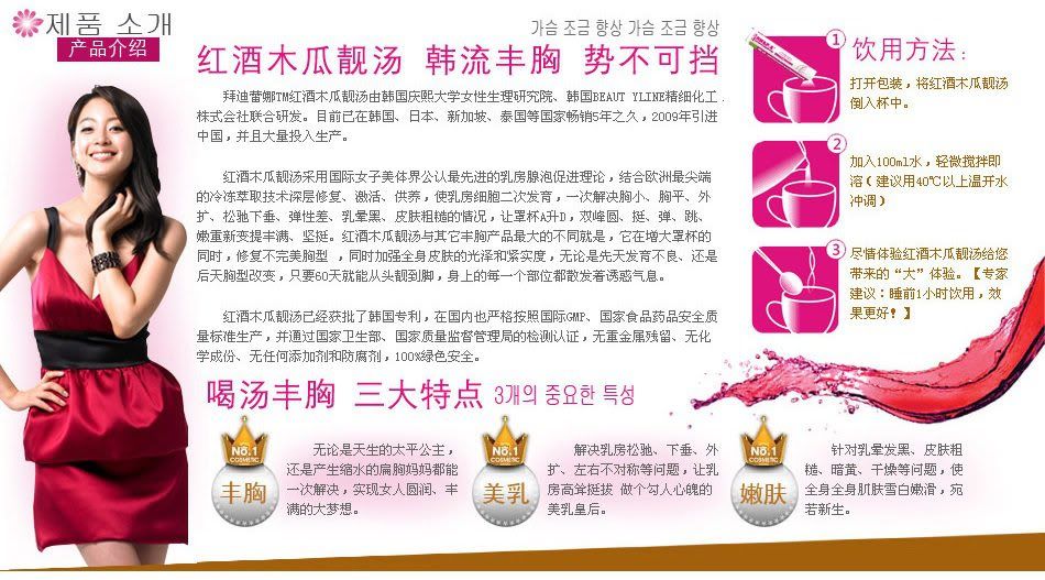 正品!(包邮)韩国Beauty Line 红酒木瓜靓汤丰胸