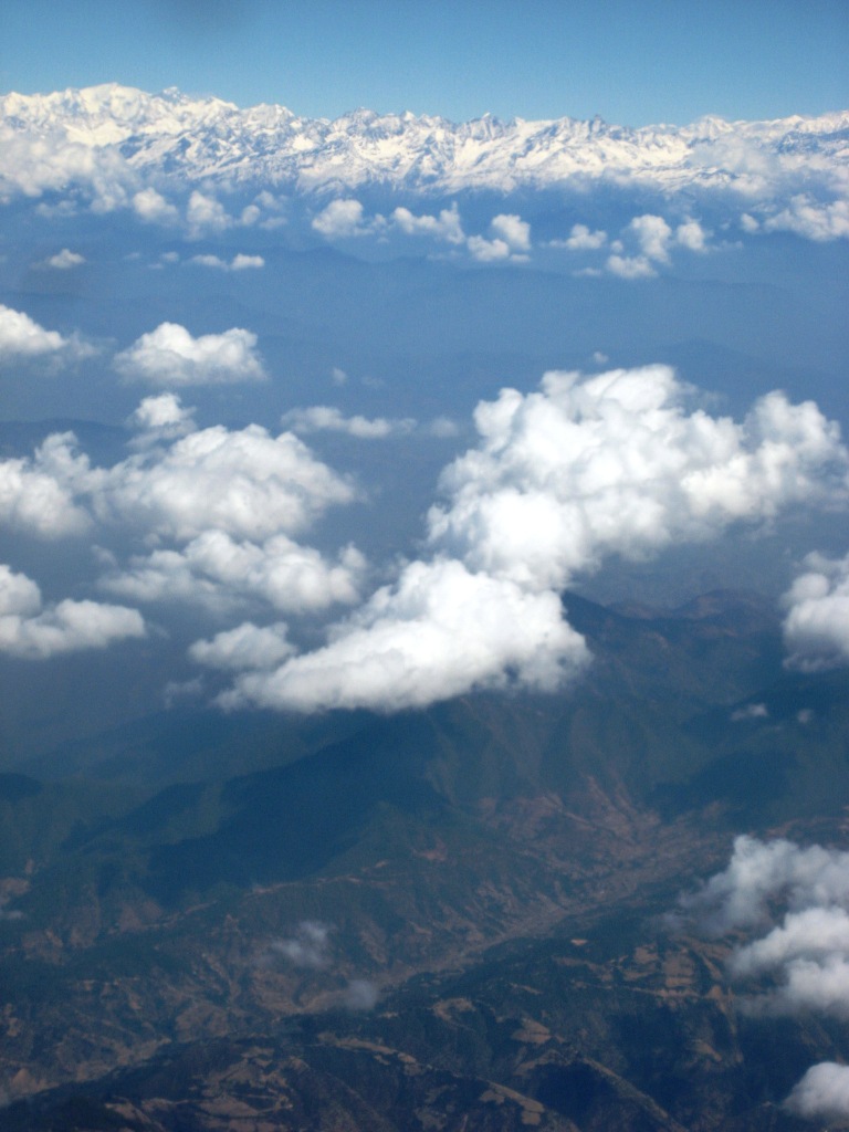 大家急急忙忙的把窗罩打开,呈现在眼前的就是那覆盖着浩浩白雪的喜马拉亚山脉。飞机由东往西飞,缓缓的喜马拉雅山脉逐渐的从低伸展到最高峰,虽然我不是很肯定拿一个山峰是珠穆朗玛峰,但是那雄伟的喜马拉亚已经让大家兴奋不已了!