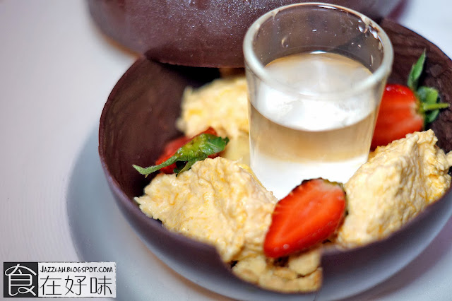 这是属于为了迎接万圣节(Halloween)所推出的特别甜品 球状是使用巧克力制作,并使用从意大利订制的球状模型才能制作出这巧克力球 当然,里头还有为了迎合万圣节的代表 - 南瓜,而制作成的南瓜甜品 由于融合了吉士丁,稍微降低南瓜的甜度让味道变得恰到好处 加上脆口的粒粒隐藏在南瓜吉士丁下,吃起来黏黏稠稠又脆脆的,超过瘾也很有“玩意”!