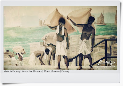 入口处有一副大约 80 尺长 X 20 尺宽的 “万历长墙”,记录了槟城两百多年的历史,讲述着当时海墘码头的运作场景。