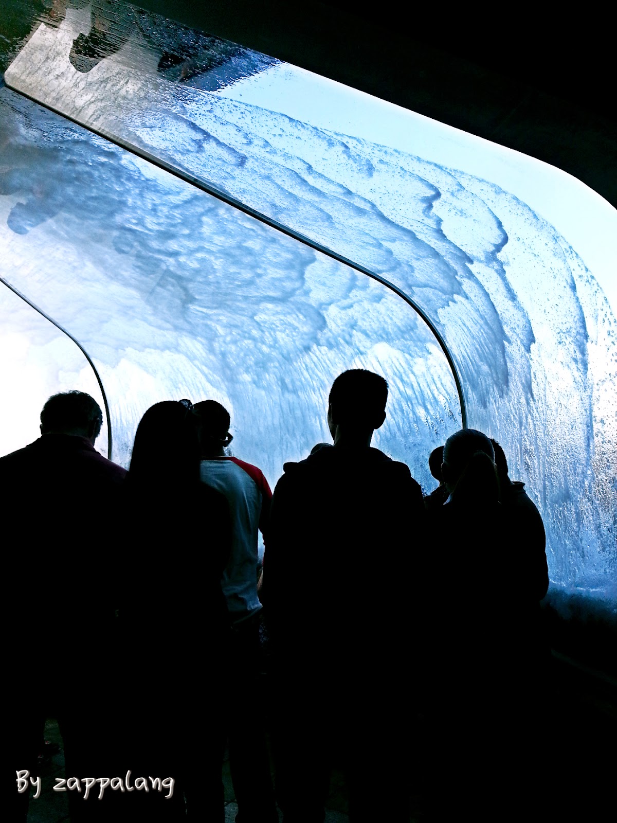 进到了海洋馆, 一眼看到的就是那大大的鲸鱼模型吊在屋顶上,海洋馆分成上下两层, 每层的面积都很大, 里头还分成了几个部份如open sea, sea otter等。