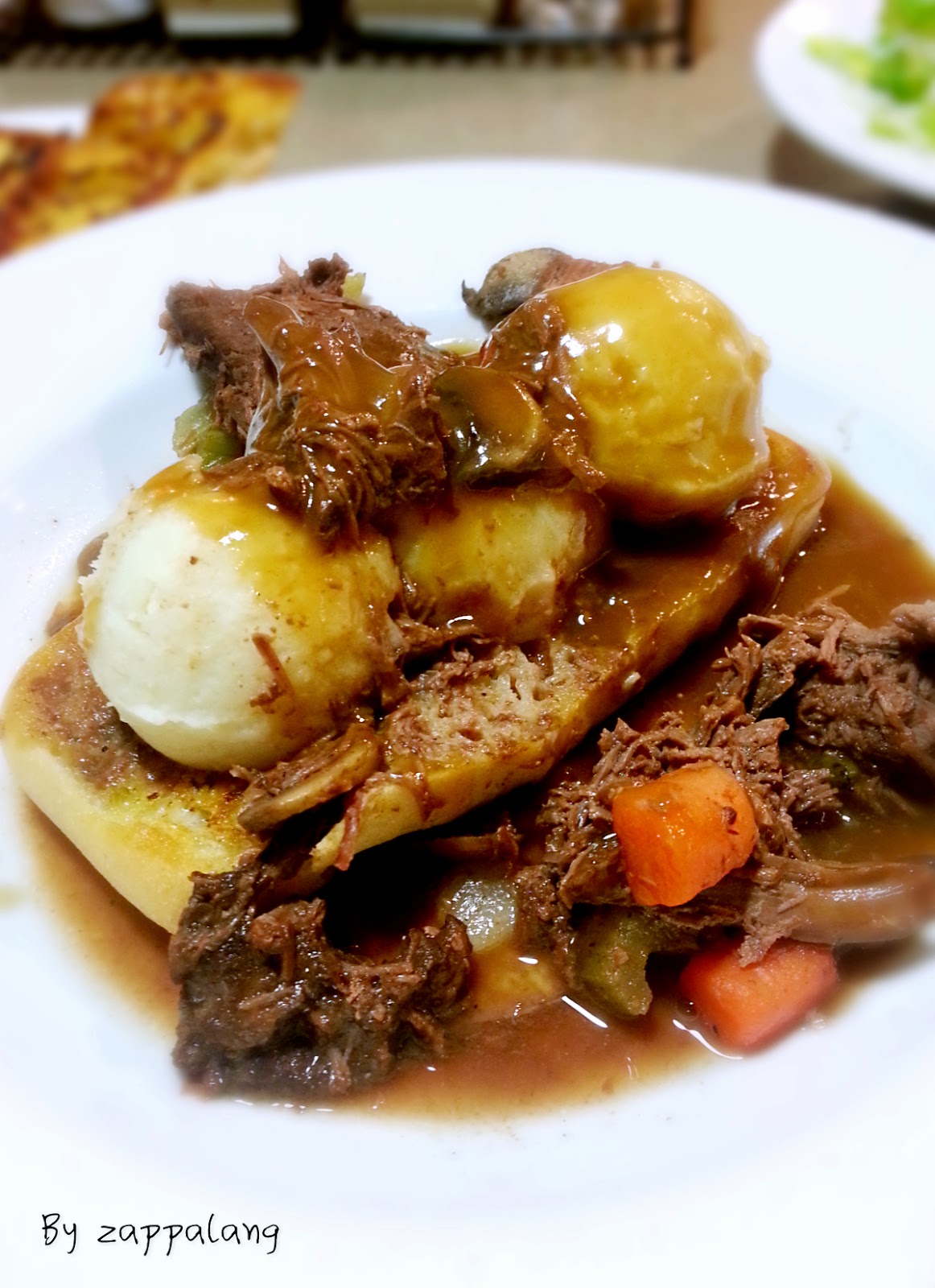 单看这一盘的份量就知道很强啦!左边这一堆是oxtail stew, 看似平平无奇, 可是牛尾炖得又香又软烂, 好吃!!pork jerky 在旁边, 吃起来有点像我们的烧肉, 感觉有点平淡, 这里的朋友可能没试过我们的烧肉才那么赞叹pork jerky 吧! 上面的焖饭加了独特的香料, 不油不腻, 里头还加了花生, 不错!