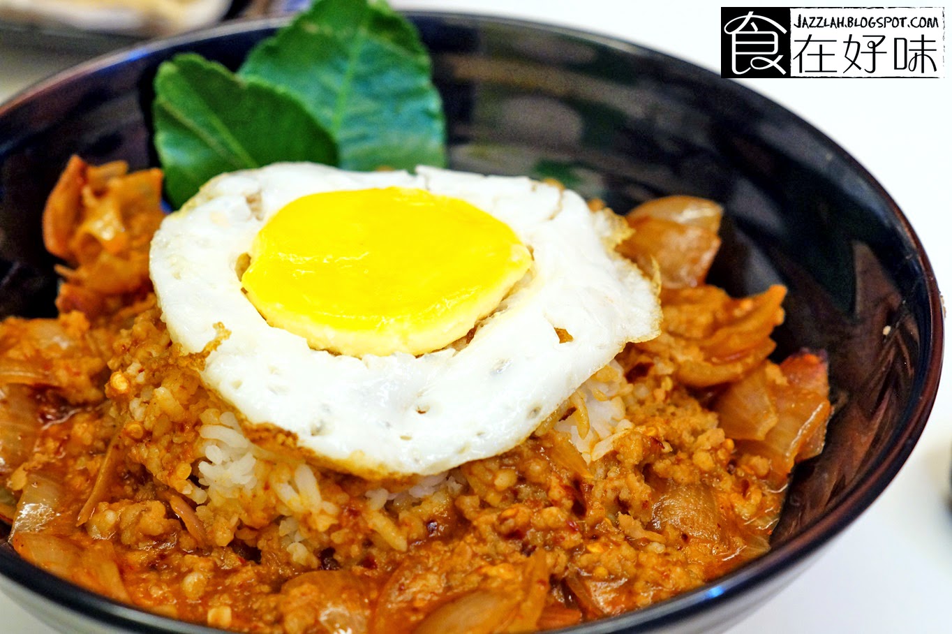 属于经典搭配之一的东炎肉碎饭,提供的是东炎肉碎铺在白饭之上外加一颗太阳蛋