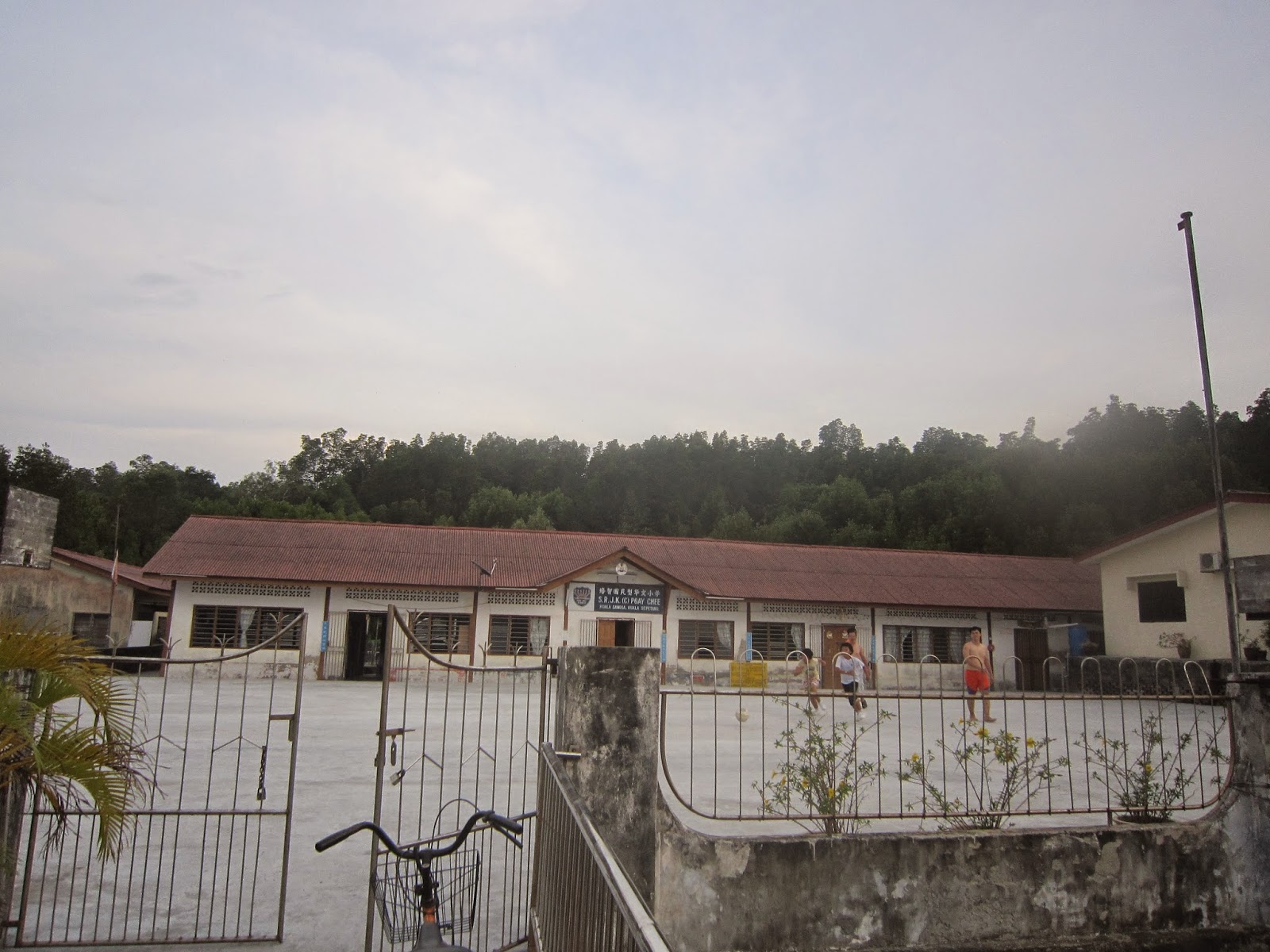 在另一段还有小学呢!老师都跟学生在打篮球呢!