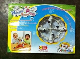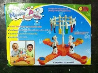 首先扭动柱子底下的红色脸盆,柱子就会带动衣服旋转起来,这时大力按键,小狗就会跳起来咬衣服了,谁咬到的衣服多就是胜利者!