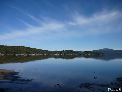 今天的目的地就是距离出入口11公里的North Arm Hut,预计费时4小时多。由于行程没有太长,也不受地形的限制如海水退潮,基本上,我们都是慢慢的走,看到漂亮的景色就会停下来拍照。步道的景色还是以树林和海为主。