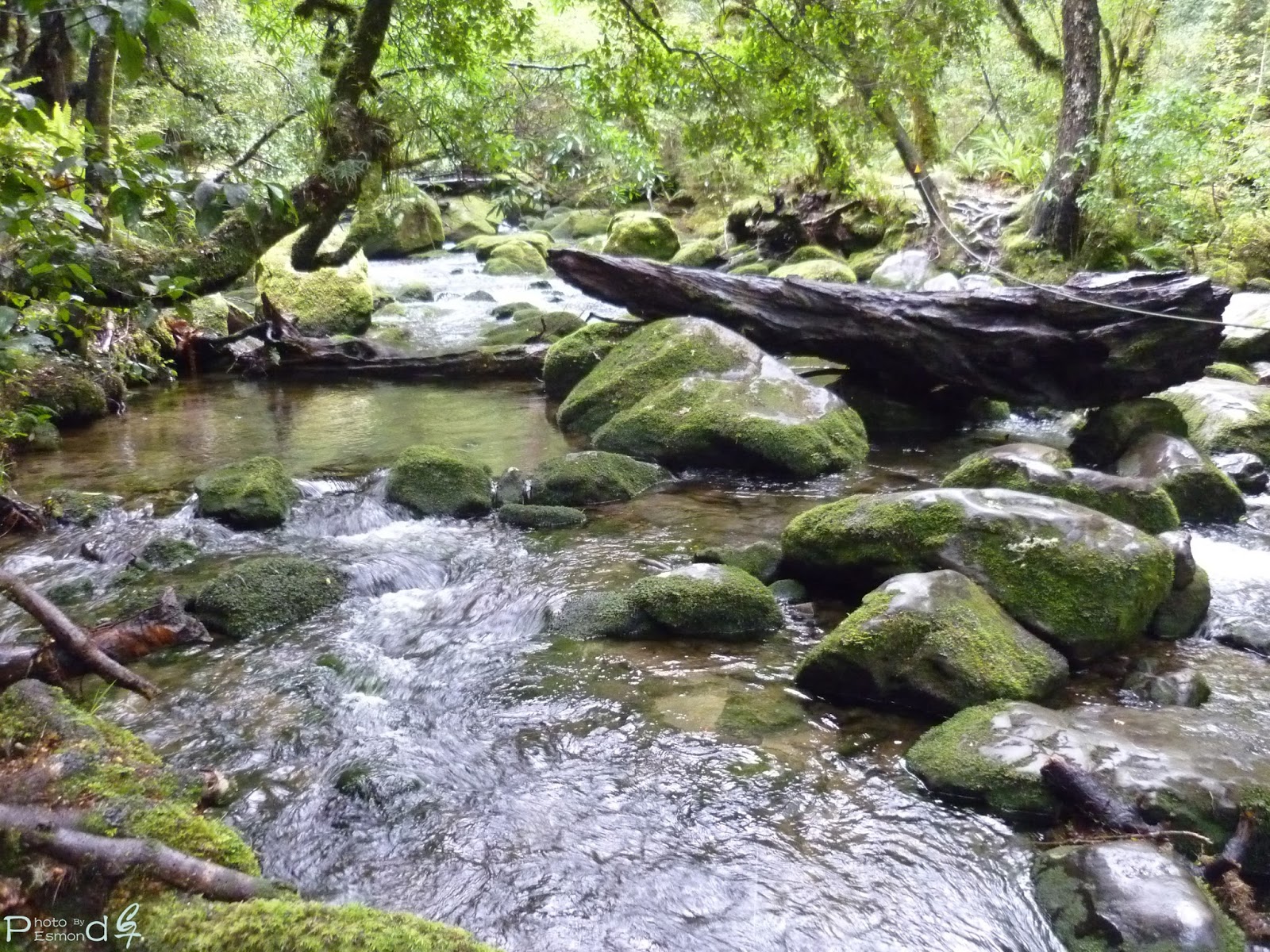 我就这样的一面淋雨一面赶路,心想,这个步道还真的是我走过的步道中遇上天气最差的一次,四天的步道除了最短的第二天,其他的天我都需要冒着雨或融化的水滴前进。。。诶,怎么说这也是我这次纽西兰之旅的最后一次健行,也是这次纽西兰之旅的最后一项活动,就不能给一给面子哦???没想到,雨竟然。。。下的更大了!!!好,我忍,我淋,我走。。。