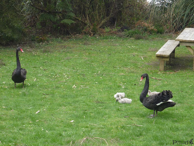 虽然今天只是我一个人在这里过夜,但我并不孤单哦,至少还有两只大黑天鹅和四只小天鹅陪我呢!