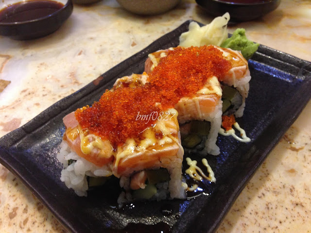 由于被那鲜红的三文鱼所吸引了,所以就选了三文鱼 Maki。 烤过的三文鱼,加上美乃滋,上面还铺满了飞鱼卵。 里头的馅料丰富,让人吃下去,脆口的飞鱼卵和各种配料的结合天衣无缝。 而且,在馅料里还有让人惊喜的 Cream Cheese,赋予味道上更多的层次感。