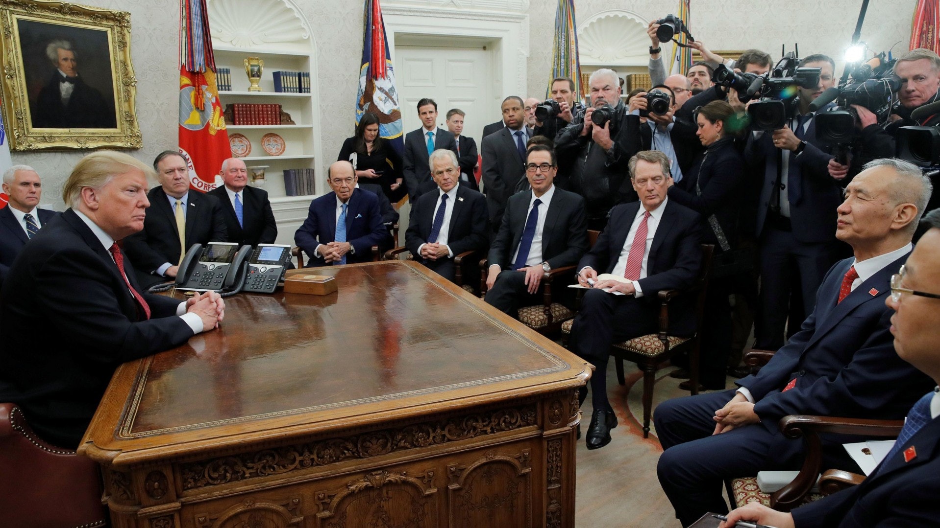 中方代表團向特朗普轉交來自習近平的信件,習近平在信中表示,期望在90日「休戰期」內與特朗普會面,在期限前達成協議,並已安排購入美國農產品,希望與特朗普保持聯絡。 特朗普形容中美關係是前所未見的深入。他稱,將與習近平會面一至兩次,形容中國已經在開放金融服務業上做很多工夫。他對北京願意購入美國商品表示欣賞,而雙方在知識產權和科技方面亦取得進展,但不代表達成協議。他提到雙方未有談及延長「休戰期」期限,認為無需要延長。華府官員稍後會再到中國繼續談判。 對於下一次「習特會」安排,特朗普謂,有可能會在出席美朝峰會前後與習近平見面,又或者可以於佛羅里達州(Florida)接待對方。 劉鶴表示,中美貿易談判順利,期望與美國達成協議,中方亦承諾從美國購入500萬噸大豆。 美國貿易代表萊特希澤(Robert Lighthizer)形容一連兩日的會談取得重大進展,但未來仍有很多工作要做,會將重點放在結構和執行問題。 【中美貿易戰】美商會:雙方就知識產權問題取得進展