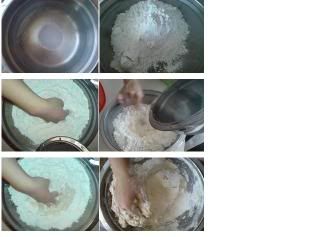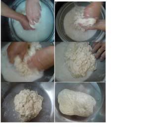 做法:面粉加水用力搓成团,之后停留20分钟,再加入水来浸大约1小时,才开始洗面粉,一直洗到水清..