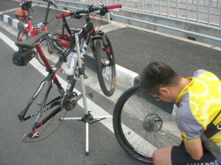 拿了后备内胎,更换了,Joesty哥也抵达了。Eason哥一番好意赶来,却没有帮忙到什么,白忙一场。然后整理一下,大伙儿其实也只是小猫三只的我们就要出发啦。
