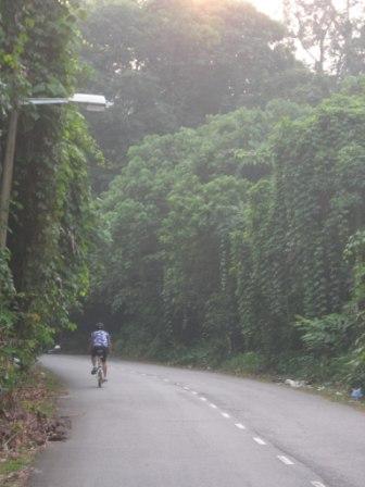 徐徐进入森林保护区,Joesty哥依然领头前进,Sam哥已经不知去向了。会合了Eason哥,就开始上山啦。上山路相对【简单】,上下就一条路,除了要闪避走山的晨运客,就是要闪躲大大小小的坑洞。名曰上山嘛,就是一直上,一直上,没有平路歇息,有的是很斜的路,斜的路和没有那么斜但也是够斜的路。
