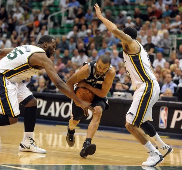 内线比拼马刺略逊爵士 邓肯遭三塔围剿依旧耀眼