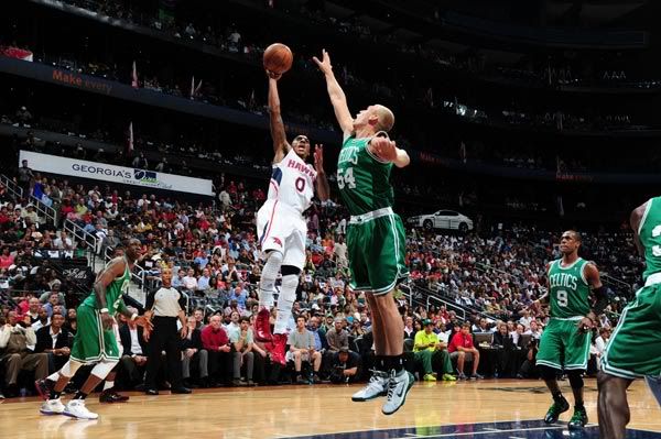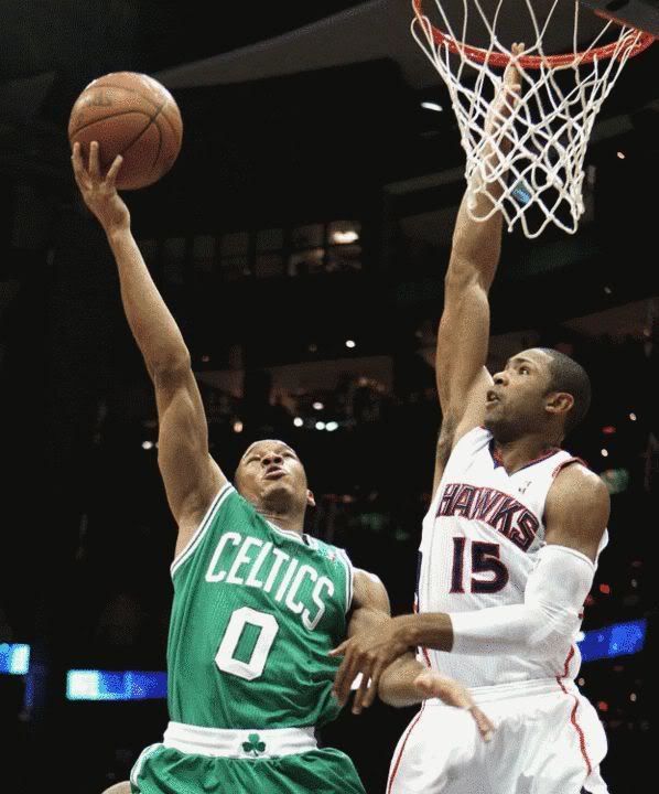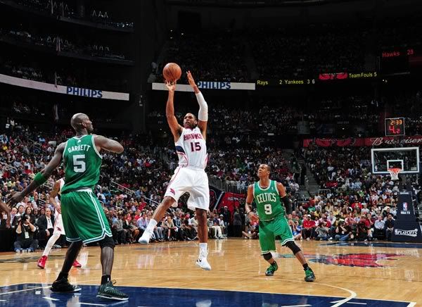 朗多跳投命中拉开战幕,蒂格和皮尔斯先后飙中三分,巴斯两罚全中,皮尔斯上篮再添两分,客队打出9-0攻击波,以11-3开局。霍福德暴扣止住颓势,蒂格和威廉姆斯锦上添花,老鹰将分差缩小。约翰逊前3投不中,皮尔斯手感炙热,4分20秒麦蒂被换上场,丹皮尔上篮得手,麦蒂妙传史密斯,后者暴扣遭封盖。阿伦巧妙上篮回击,加内特跳投得手,最后压哨三分命中,但随后被改判两分,凯尔特人首节21-15领先。
