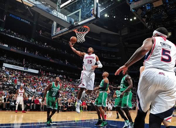 朗多连送两次助攻,随后跳投砍下两分,帮助凯尔特人反超比分。雷-阿伦射中三分,史密斯勇敢站出,连投带罚砍下5分,霍福德跳投再中,威廉姆斯暴扣将比分改写为77-74,绿军被迫暂停。老鹰火力全开,史密斯、霍福德和约翰逊先后投篮命中,主队打出10-2攻击波,皮尔斯走步失误,凯尔特人再次暂停。波士顿三巨头突然发力,联手发动7-0攻势,顽强将比分追平。关键时刻霍福德暴扣和勾手连取4分,老鹰稳住阵脚。皮尔斯50.6秒时射中关键三分,蒂格三分不中,朗多抢断成功,但没形成出手机会,老鹰最终87-86险胜对手,将总比分改写为2-3。