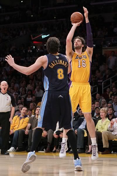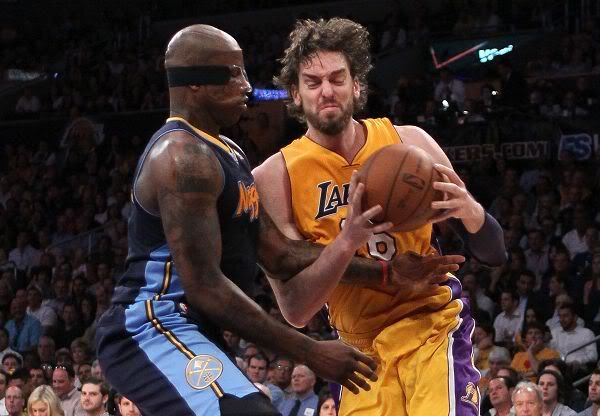 本赛季的拜纳姆呈现出超级中锋的气质来,无论是得分还是篮板方面的表现都非常出色,在布朗教练的体系之下“小鲨鱼”获得重用而如鱼得水。相比之下,加索尔是湖人两连冠期间的重要二当家,却被拜纳姆挤到球队三号球星的尴尬位置当中。然而在首轮第五战的关键时刻,拜纳姆和科比两人在第三节末段的时候搭档打掘金替补时,却被对手连连打爆,这也成为比赛的关键转折点。