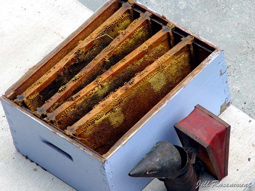 把那个wax刮掉,里面就是honey。蜜蜂很神奇,那个wax的洞洞都是同样大小。