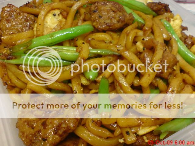 黑椒乌冬面.材料有乌冬面(废话 ),桂豆,蛋和自己做的肉滑(鱼做的叫鱼滑,猪肉做的当然叫肉滑咯 )酱料用了tom yam酱,黑糊椒,黑晒油,生抽和一点的水.