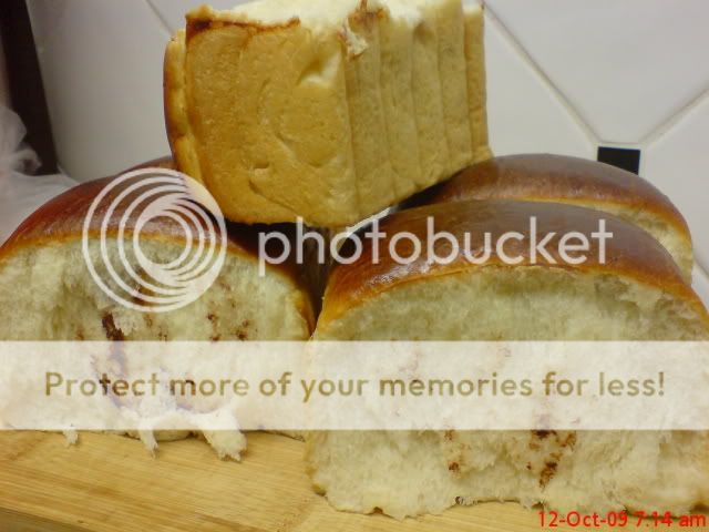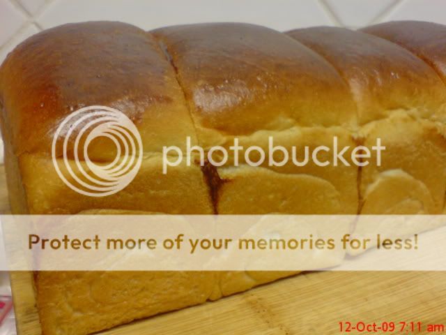 土司烤好后才大概8分满模,幸好可以达到我要的软度,也很喜欢切开后的土司,看起来满美的(臭美,哈!)自己和同事吃了两粒,其余的三粒请了part time的同事吃.(过后接到part time同事的电话说她5岁的女儿很喜欢吃呢)