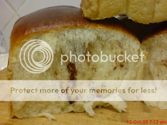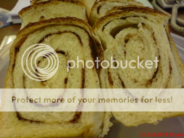 拖到前几天才决定做这个肉桂土司,原本打算土司拿回妈妈家的,谁知道第一次用的'红人'牌子酵母竟然没有很'活跃',结果土司第一次发酵用了大概2小时,最后发酵3小时都还是矮矮的(大概5分高而已)这和我一向用的酵母真的差太远了(平时我大概3小时就做好了)气煞的我不管三七二十一,就将它丢进烤箱里烤了30分钟.