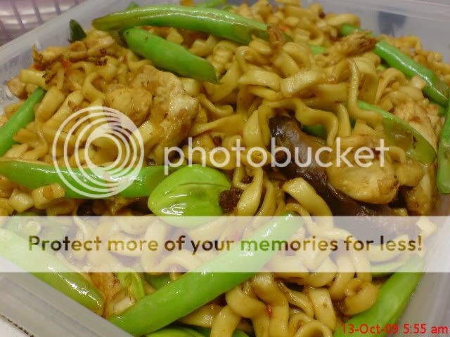 这是belacan辣椒炒风干面.材料非常简单,有风干面,鸡肉块,桂豆,臭豆(特地加的, )冬菇,酱料只用了belacan辣椒和一点的生抽.