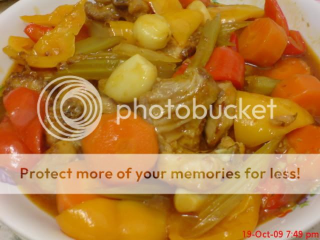 酱料:辣椒酱,蕃茄酱,麻油一点点,生抽,糖,盐,LP酱(家里没有,所以我没放)酸酶酱,水大概2杯(我没有量分量,最好自己试)