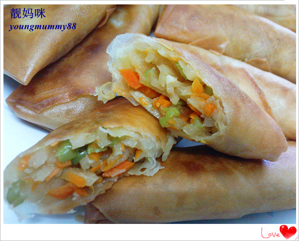 之前过年的春卷皮还没用完!因为太贪心,买了很多包,因为去年买不够,所以今天过年前就买了蛮多包囤货,可是却又因为害喜所以很多东西都没办法做!所以剩了3,4包!