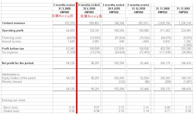 以下是KNM每季的財務表,紅線左邊是收購BORSIG前,右邊是收購BORSIG後: