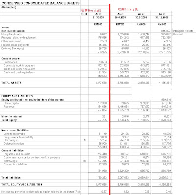 *KNM因為周轉不靈而以“A”錢應急,結果也使它的債務提高到令人心驚的地步。長期債務不計Deferred taxation,從第3季的297,001提高到第4季的360,447;最可怕的是一年內要清還的短期借款,從第3季的976,243提高到第4季的1,118,161;以KNM的經營現金,根本不可能在一年內還清,在這種情況下,一是向另一方再融資,以債還債,但是目前的經濟狀況和KNM的債務之高,除非走後門,否則是不可能作到的。最後一個,就是破產清盤。