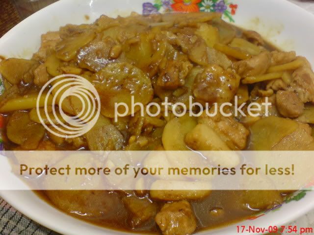 这算是我革命成功的一道菜,在我又哄又骗再加上老娘'假假'生气的威逼下,他终于肯吃这道他一向都不吃的菜 - POTATO焖花肉.特地将POTATO切得薄薄的,炸过后才焖花肉,等着看他一脸难吃的表情,谁知道他吃了一口就说:这菜很香哦!和我以前在杂饭档吃的很不同.我问他:那以后我再煮这道菜你还会吃吗?他说:如果是这样的我当然会吃啦!当下的我开心到......