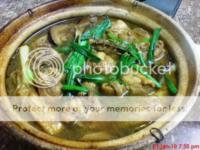 做法很简单,炒香麻油,蒜茸和姜丝,加入鸡块和香菇炒香后,倒入黄酒后,我就将所有的材料都倒入瓦煲里,转中火煮了大概25分钟,最后加盐调味(我再加多一些的黄酒)再煮五分钟后,加上葱段就好了.应该是心理作用,总认为用瓦煲煮的料会特别香,再加上我还煮了这么长的时间,所以我和他都觉得这道瓦煲黄酒鸡真的很好吃,.^_^