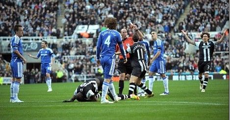 比赛开始不久,纽卡斯尔就险些通过一次简单的直传身后,由登巴巴打破僵局,切尔西中卫路易斯用一个够得上红牌的犯规动作阻止了他。这次犯规跟之前蓝军输给女王公园巡游者时博辛瓦的犯规很相似。