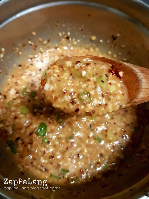 材料: 蒜头碎2匙,辣椒油1匙,芝麻酱2大匙,青葱粒1匙,麻油少许,盐少许,芝麻1匙,清水2匙。