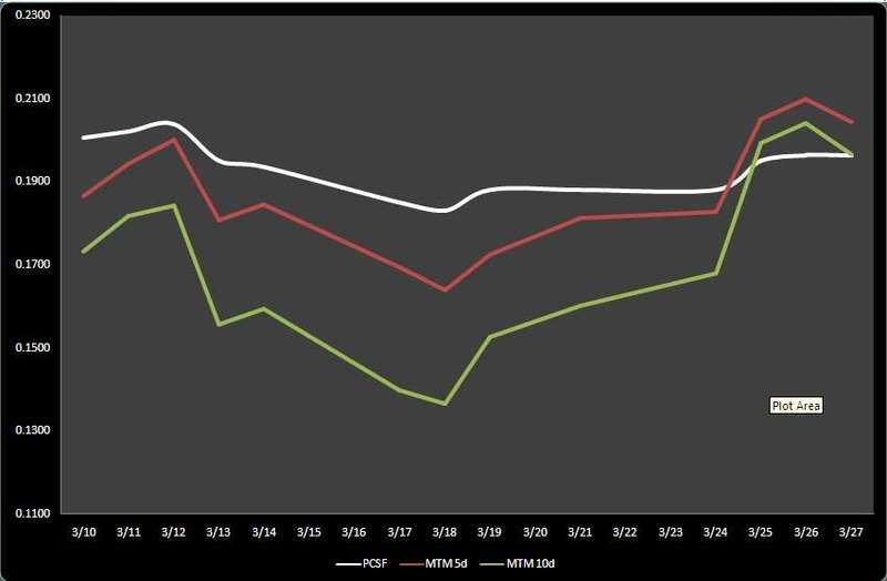 ##我多数用13天和35天。我说的RM0.215的支持点是排除5日,10日,20日线的另外一种看法,再把3月6日和12日的高点画连在一起延长到右下角你会发现接触到的是3月25日。超过3月25日就上涨了。