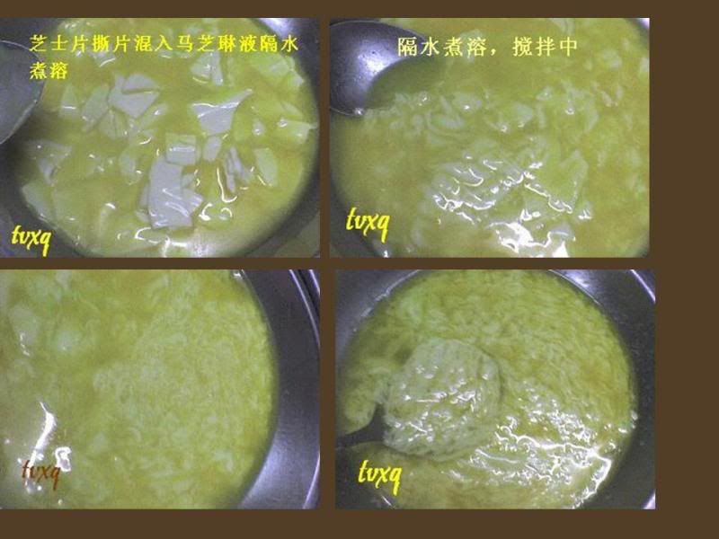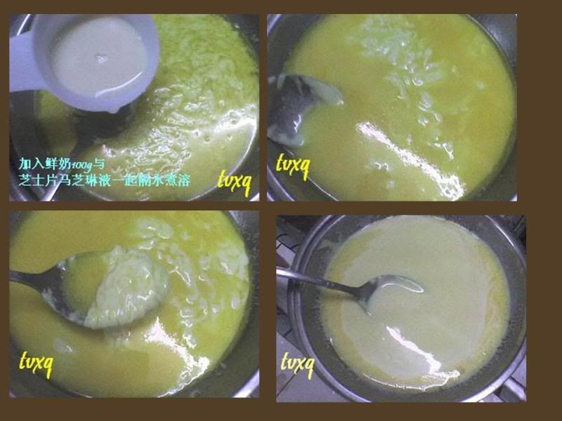 首先,牛油,芝士片和牛奶是一起隔水煮溶~