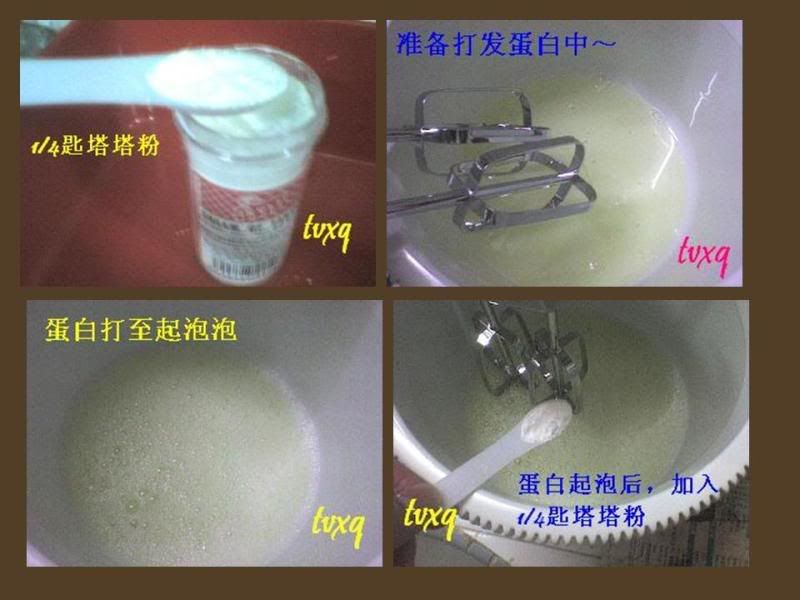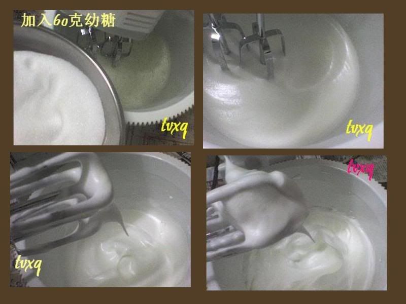 如果有蛋白打到比较硬,可以用刮刀轻轻稍微把蛋白弄散 《--这个是我建议而已,专业人士看到可能晕倒了~  不过我每次都会稍微这样弄比较硬的蛋白~  |