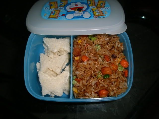 我今天也弄了面包给儿子带去学校, 弄了小小个的bear,大象和一只牛,加蛋和午餐肉, 那知弄好之后, 他讲"妈咪, 我不要小小个的, 我要大个的pooh bear脸加蛋就好", ,沒办法又弄过, 那三只动物只好给弟弟吃 ...