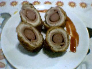 没有芝士,只用肉片卷了香肠及火腿….为了赶太阳下山前拍照(因用webcam,房间不够亮),结果忘了把撒拉菜摆盘…. 跟懒惰餐比起来,是罪孽深重的一餐….. 肥啊….