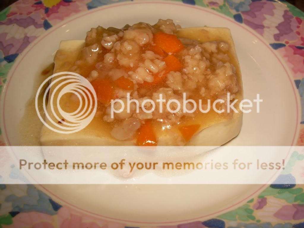 3。将上层材料放入热油超10分钟,加入调味料(B)炒匀。放在水馃上层一起享用。