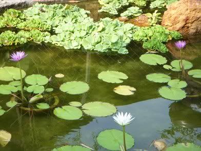 我自己设计的过滤箱,内置海棉,活性碳,将水导入水箱,再用PUMP将水吸回塘里,简单,但效果不理想.
