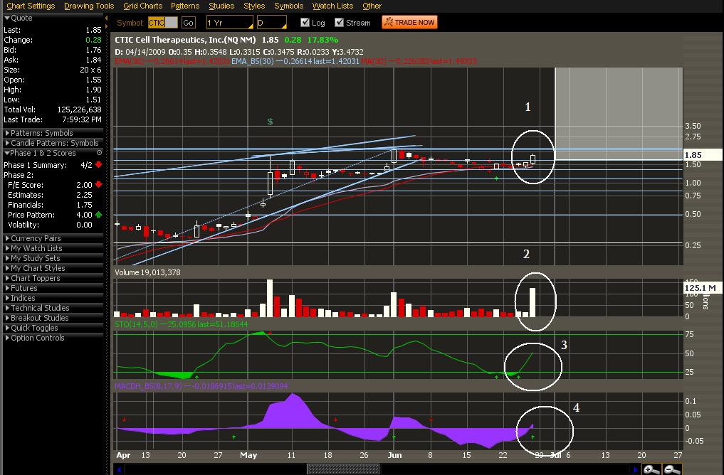 A Lot of people have been curious about the increased volume in both CTIC and HEB towards the end of market on Friday. As I had mentioned, this could be a result of a myriad of things, Russell 3000, greed, short sellers positioning, market manipulators positioning.. etc.. Bottom line, this is really unimportant, what is important is the volume spike itself. That, along with all the other technicals are painting a picture of what we can expect this upcoming week.