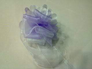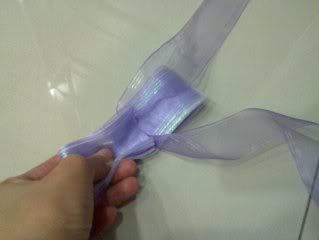 依你要的花球阔度,把ribbon卷成这样。我的折后是差不多12-15cm